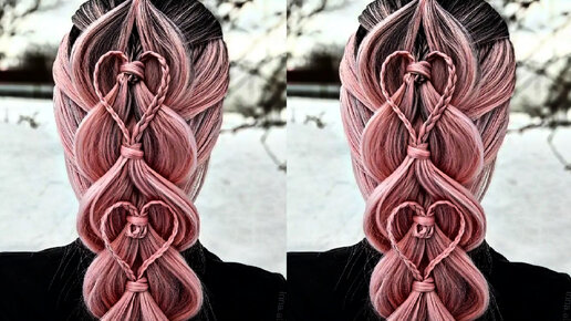 Коса на резинках/Коса с сердечками/Прическа для девочек