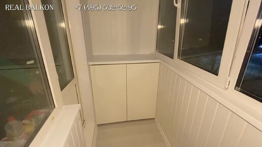 Остекление балкона в П-44 «сапожок» под ключ. Встроенная мебель на балконе