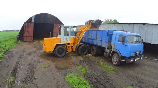 Погрузка ячменя погрузчиком ТО-30 в КАМАЗ. Новые фары на МТЗ-82.