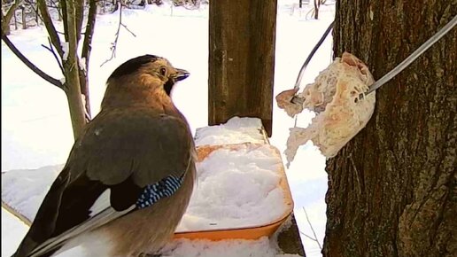 Как ведут себя разные сойки на кормушке