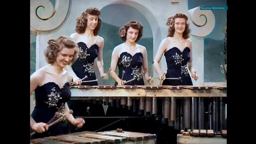 Эстрадное шоу в США 1940-е годы. раскрашенная черно-белая кинохроника .
