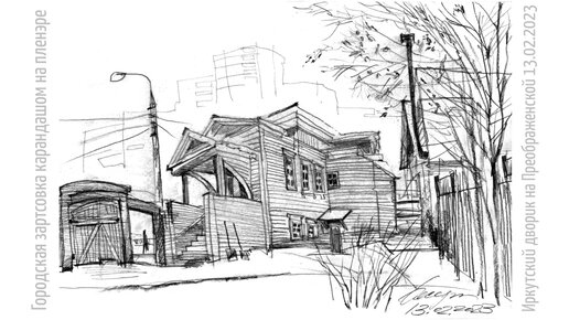 Городская зарисовка карандашом на пленэре 13.02.2023 Urban Sketching Pencil Real time Drawing