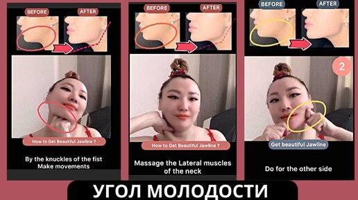 Угол Молодости, упражнения от Второго Подбородка. Массаж лица