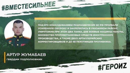 #Герои Z: гвардии подполковник Артур Жумабаев взял стратегическую полосу