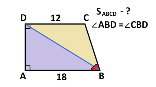 Диагональ прямоугольной трапеции является биссектрисой её острого угла. Найти площадь трапеции.