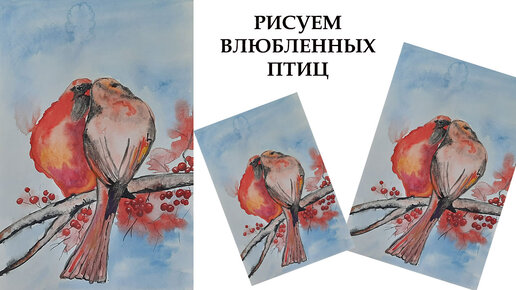 Как нарисовать влюбленных птиц акварелью. Рисуем птиц легко. Картина для начинающих.