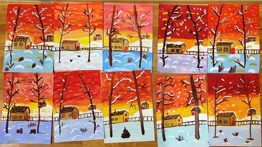 Как нарисовать зимний пейзаж. Урок рисования в школе.