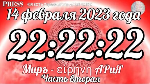 🔔Прямой ЭФИР АРиЯ-USSR 14.02.2023 22:22:22 🎥 Миръ - εἰρήνη АРиЯ - Часть вторая 🏞