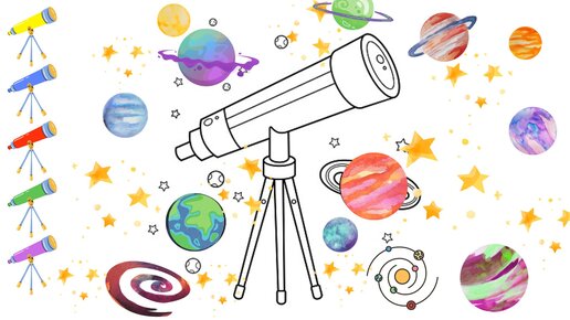 Рисуем ТЕЛЕСКОП. Как нарисовать Телескоп. Рисование для детей и малышей.