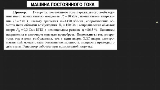 Задача 1. Генератор постоянного тока параллельного возбуждения