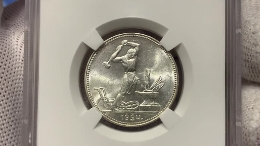 Серебряные монеты страны Советов. Полтинник 1924 года (ПЛ) в слабе ННР MS64.