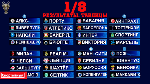 Лига Чемпионов. 1/8 финала. Результаты. Расписание.