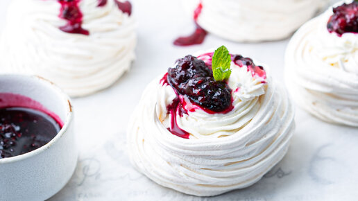 Нежный десерт "Павлова" с ежевичным конфитюром!Идеальное сочетание сладости и ягодной кислинки.