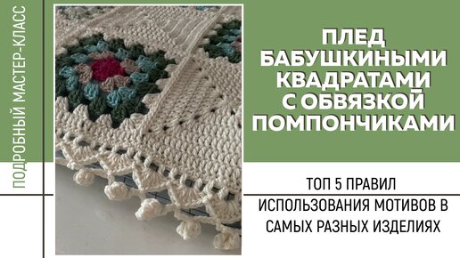 МК ПО ПЛЕДУ БАБУШКИНЫМ КВАДРАТОМ || ТОП 5 ПРАВИЛ использования мотивов в самых разных изделиях ||
