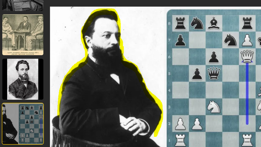 Михаил Чигорин шел к победе белыми над Оссипом Бернштейном в Киеве, споткнулся, упал в гипсе, черные одержали победу (Киев, 1903, 0-1)
