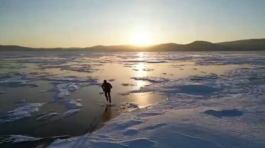 Житель Миасса проехал на коньках по озеру Тугояк, одновременно прыгая на скакалке