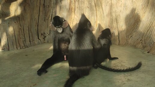 Хохлатые Мангобеи всем семейством греются на солнце