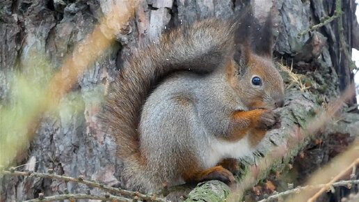 Черные ушки, черные лапки, черные носик и хвостик! Очаровательный бельчонок, романтично грызет орешек!
