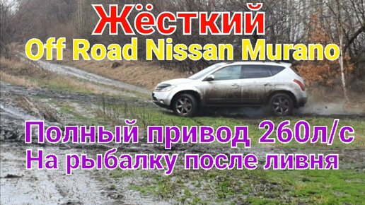 Треш Жёсткий Off Road на Нисан Мурано 3,5литра 260л/с, едем на рыбалку в ливень такого вы не видели