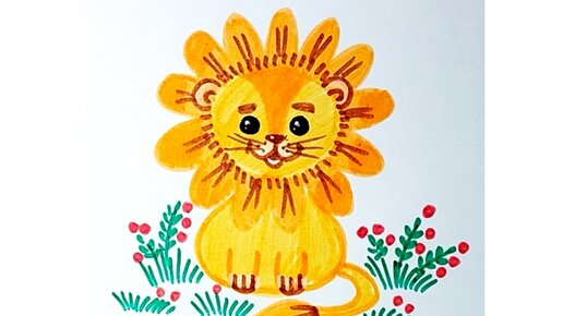 🌼🦁🌼Как нарисовать милого львёнка маркерами.🍀🌼