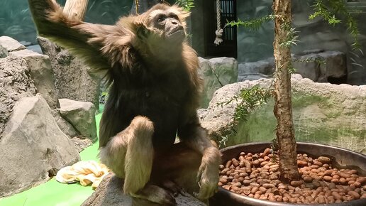 Чернорукий гиббон самка Лиза в Московском зоопарке.