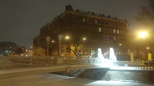 Санкт-Петербург зимней ночью 2023. Львиный мост.