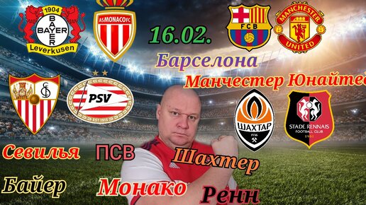 Лига Европы УЕФА/Барселона-Манчестер Юнайтед/Байер-Монако/Севилья-ПСВ/Шахтёр-Ренн/16.02.2023