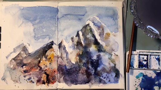 Такие горы рисуются легко и просто. Кисть сама бегает по бумаге.Простые обучалки.