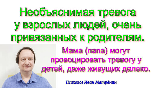 Необъяснимая тревога у взрослых людей, очень привязанных к родителям. Мама (папа) может провоцировать тревогу у детей, даже живущих далеко.