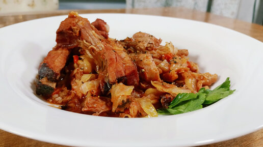 Вкусная солянка из капусты с курицей и копчёными ребрышками