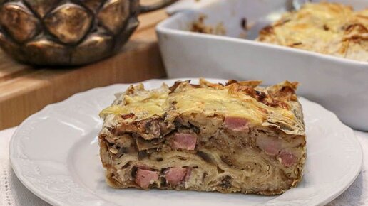 Показываю, как выглядит рваный пирог из лаваша на срезе. Все пропеклось!