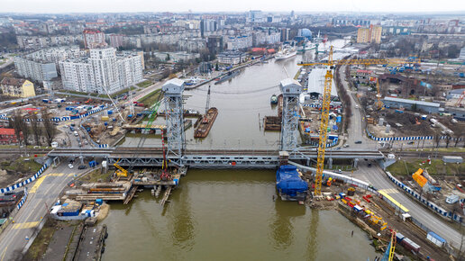 В Калининграде начали возводить башни-опоры ж/д моста через Преголю