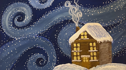 Зимняя вьюга гуашью. Зимний пейзаж - гуашью!