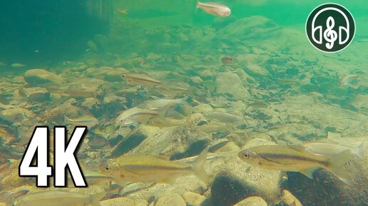Расслабляющее видео. Плавающие рыбки со звуком подводной реки.