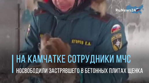 На Камчатке сотрудники МЧС освободили застрявшего в бетонных плитах щенка