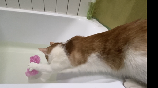 Шапочка для душа очень нужная вещь . #котыилюди #котеноквдоме #семьяилюбовь #кот #водаизподкрана #ваннаякомната
