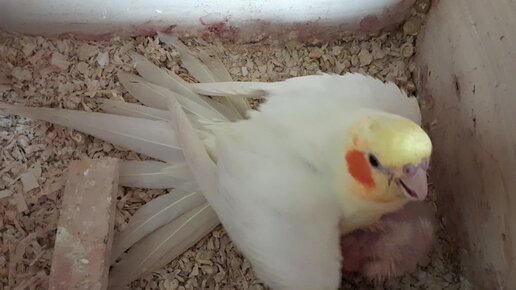 Попугай ГАРИ сидит с птенцами и греет их))) Ответственный папа))