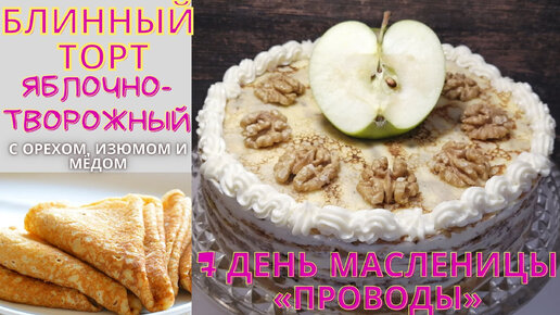 7 ДЕНЬ МАСЛЕНИЦЫ - "ПРОЩЁННЫЙ ДЕНЬ - ПРОВОДЫ". ГОТОВИМ ОЧЕНЬ СЫТНЫЙ НАСЫЩЕННЫЙ БЛИННЫЙ ТОРТ «ЯБЛОЧНО-ТВОРОЖНЫЙ» С ОРЕХОМ, ИЗЮМОМ И МЁДОМ