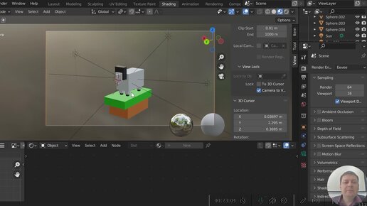 Создаем 3D майнкрафт-овечку из кубов и сфер, накладываем материалы, раскрашивая и проводим рендер готового изображения в Blender