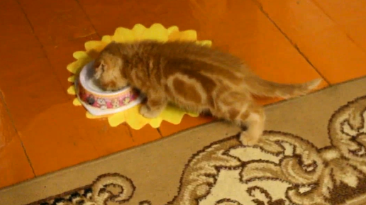 Котёнок Бася, 2 месяца, пьёт молоко.