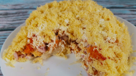Нежный французский салат с ветчиной, морковью и сыром