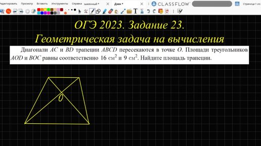 Ищём площадь трапеции по площадям треугольников. ОГЭ, задание 23. Геометрическая задача на вычисление.