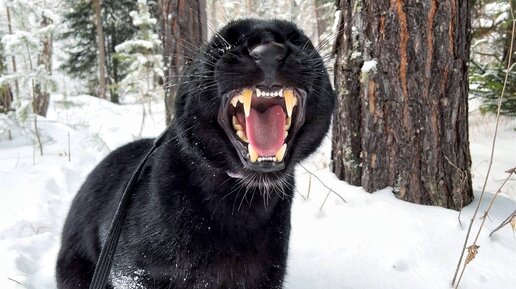Пантера Луна купается в снегу 🐆❄️ Замедленная съемка 😸