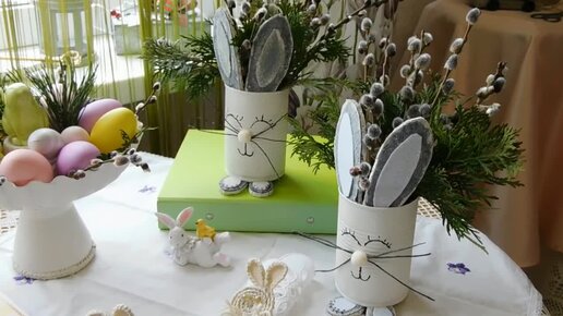 Зачем это выбрасывать. Зайчики из консервных банок и подставка для яиц.