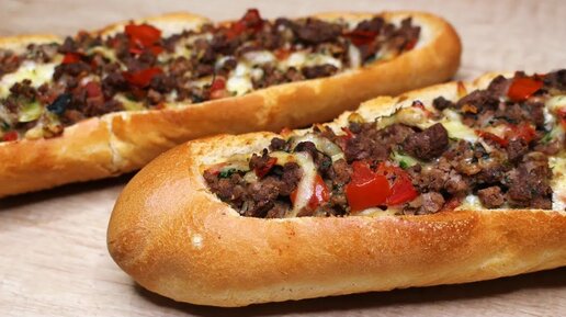 БАГЕТ С НАЧИНКОЙ из фарша и овощей - простая и быстрая закуска для компании!