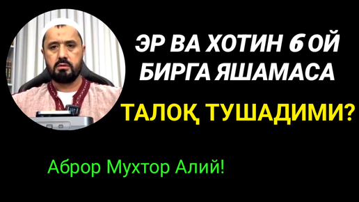 ЭР ВА ХОТИН 6 ОЙ БИРГА ЯШАМАСА ТАЛОҚ ТУШАДИМИ - АБРОР МУХТОР АЛИЙ