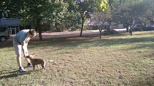 Немецкая овчарка, Ева (3 мес) Занятие 1. Движение за рукой с кормом