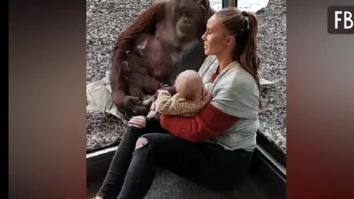 Обезьяна в зоопарке смотрит за кормящей мамой