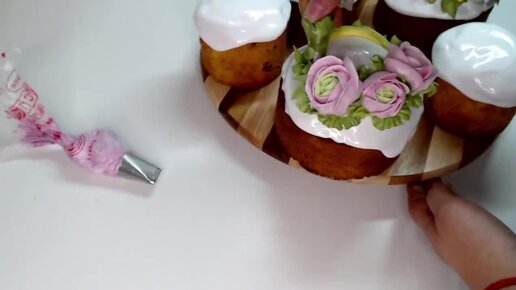 Розы из Белково Заварного Крема Оформление куличей Танинторт