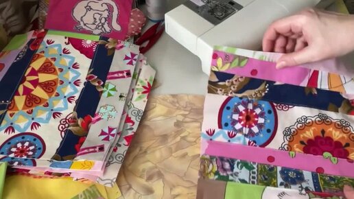 Из ненужных полосок ткани шью блоки Для легкого одеяла- покрывала